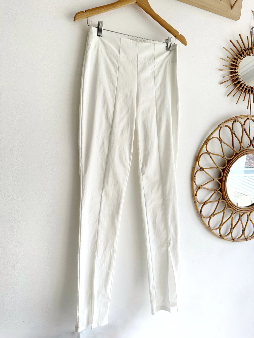 Descripción: Pantalón ajustado, entallado al cuerpo y súper elastizado. Detalle de cierre lateral y tajo frontal en los tobillos.